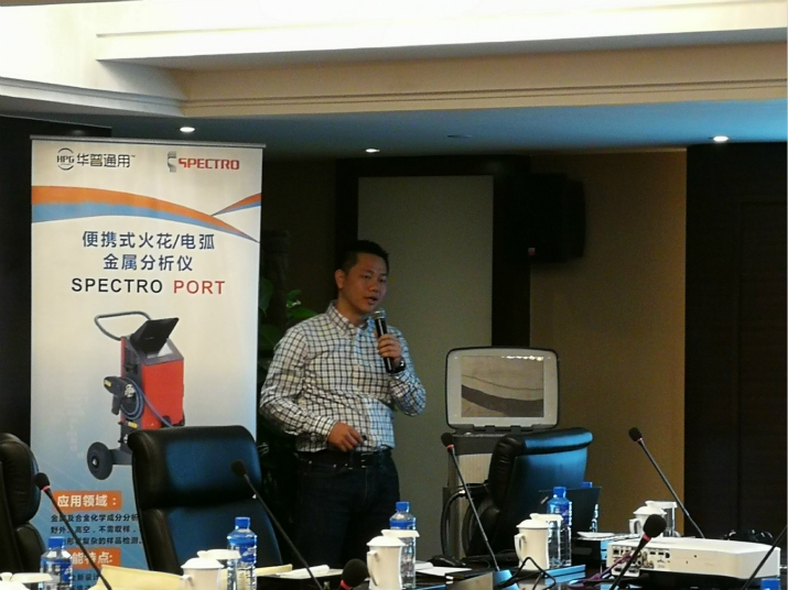 深圳華普通用科技有限公司攜手德國斯派克(SPECTRO)分析儀器公司于2018年02月01日在茂名國際大酒店聯(lián)合舉辦了“光譜儀應用技術交流會”。本次共有9家單位30多人參加了此次交流會。德國斯派克市場總監(jiān)及產(chǎn)品經(jīng)理著重介紹了公司的全系列產(chǎn)品及其應用,涵蓋了直讀光譜儀 SPECTROLAB、 SPECTROMAXx, 便攜式/移動式光譜儀SPECTROTEST、SPECTROPORT,等離子體光譜儀SPECTRO ARCOS、SPECTROBLUE,X熒光光譜儀SPECTRO MIDEX、SPECTRO XEPOS以及手持式X熒光儀SPECTRO xSORT等。
